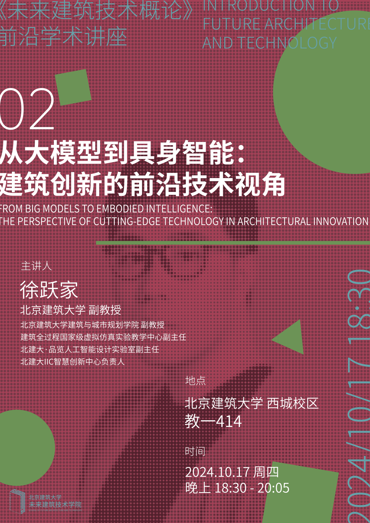 讲座预告 | 徐跃家:从大模型到具身智能:建筑创新的前沿技术视角