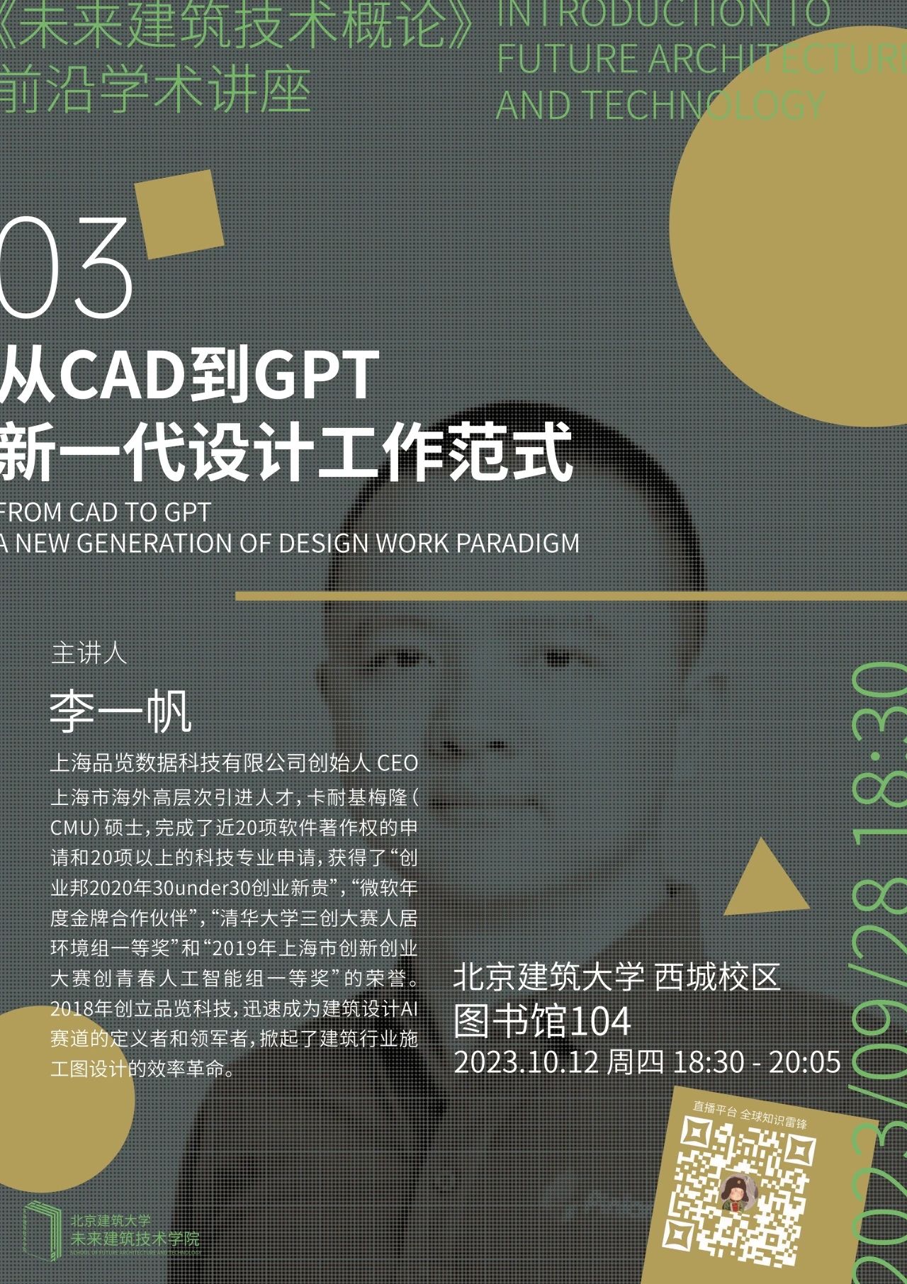 讲座预告 | 李一帆:从CAD到GPT 新一代设计工作范式