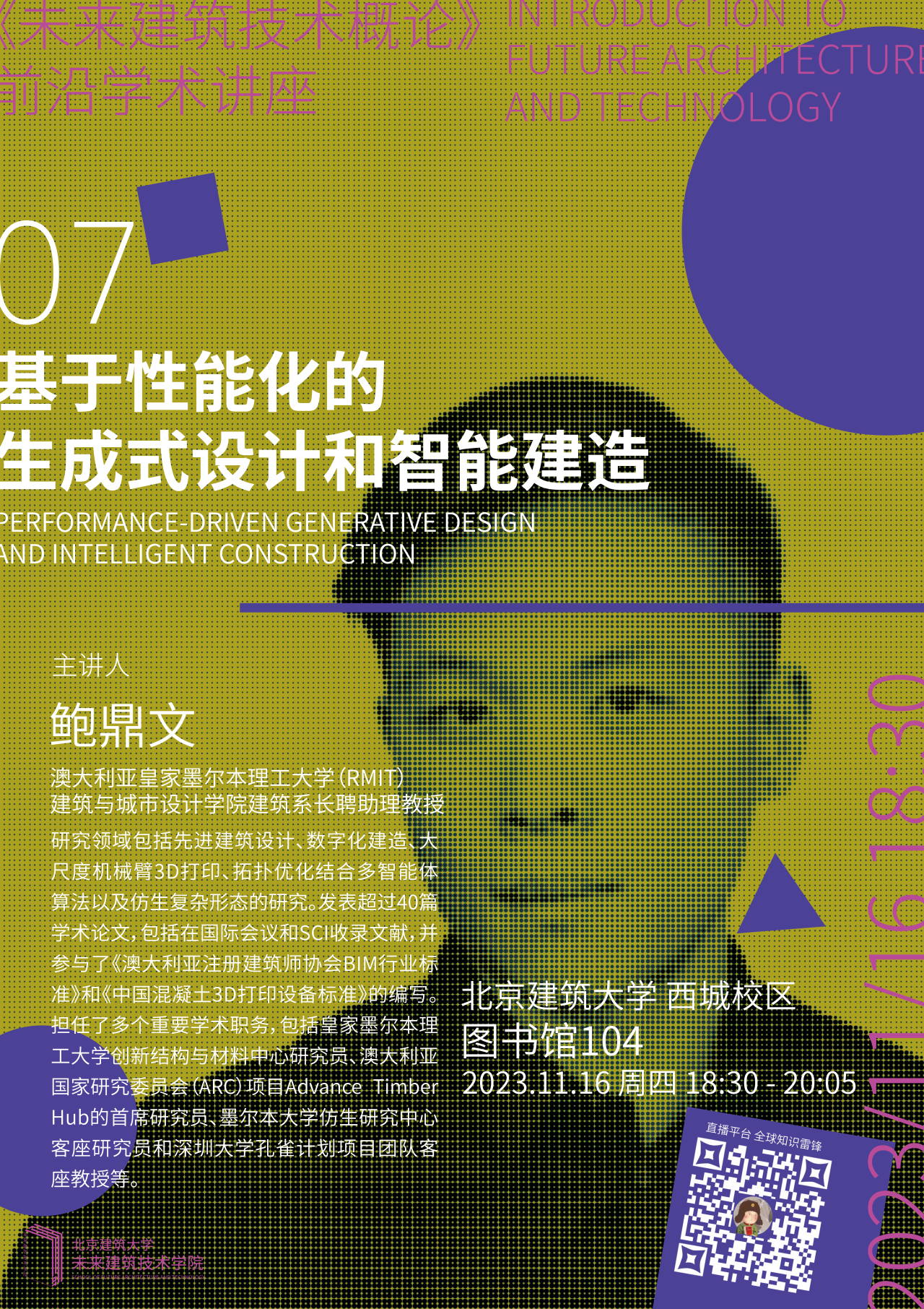 讲座预告 | 鲍鼎文:基于性能化的生成式设计和智能建造