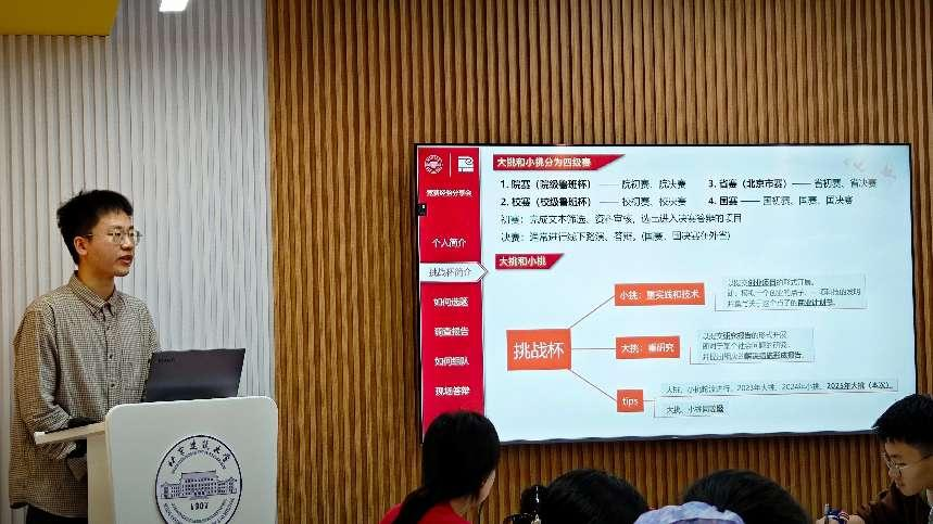 陈思源讲到,努努影视 高度重视学生科研能力和创新意识培养,探索以项目为导向,推动科创成果转化。她鼓励同学们要密切关注社会时事、行业领域、首都建设、学校发展与个人成长,尽快完成“大学生”身份和“科研人”状态的转换适应。她强调“科创正当时”,希望同学们以本次活动为契机,利用假期时间更好地蓄力赋能,加强学习,主动思考,深挖好项目、组建好团队、凝练好成果,期待在“挑战杯”等高水平赛事中勇创佳绩。