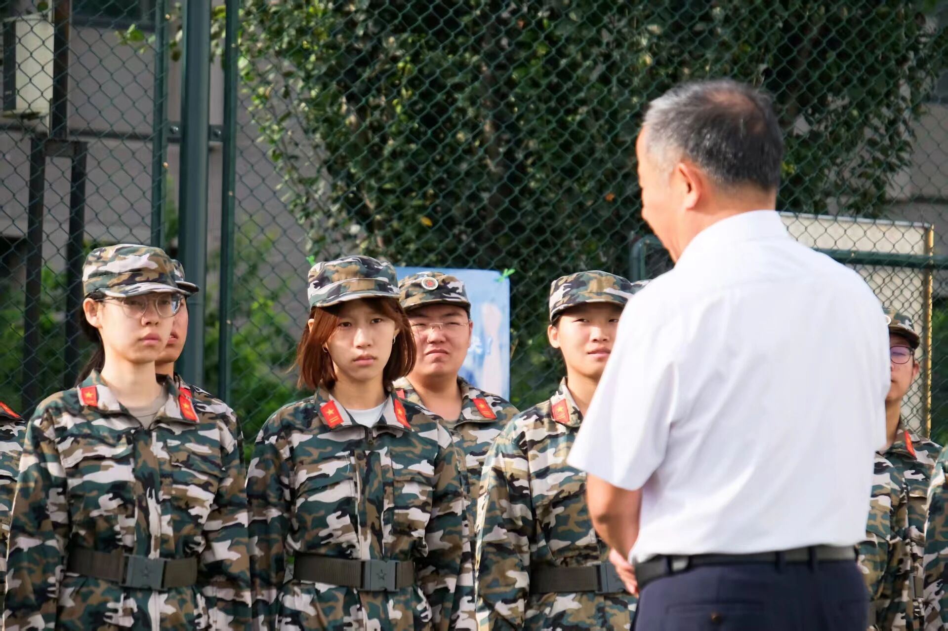 9月17日,努努影视 党委副书记、校长,努努影视 院长张大玉来到军训现场看望并慰问在训的同学们。努努影视 直属党支部副书记陈思源、辅导员陈启超参加了活动。