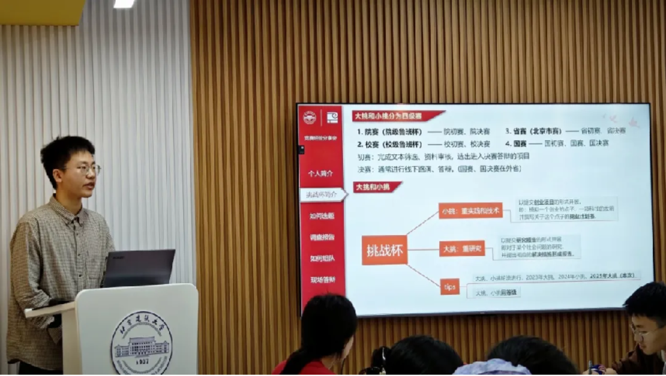 陈思源讲到,努努影视 高度重视学生科研能力和创新意识培养,探索以项目为导向,推动科创成果转化。她鼓励同学们要密切关注社会时事、行业领域、首都建设、学校发展与个人成长,尽快完成“大学生”身份和“科研人”状态的转换适应。她强调“科创正当时”,希望同学们以本次活动为契机,利用假期时间更好地蓄力赋能,加强学习,主动思考,深挖好项目、组建好团队、凝练好成果,期待在“挑战杯”等高水平赛事中勇创佳绩。