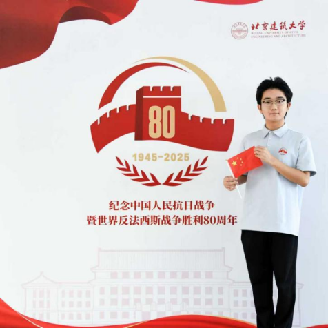 在活动筹备期间,选拔与培训过程的严格,让我深知此次任务的重大意义。当天凌晨我与同学们就抵达点位,尽管困意阵阵,但内心的使命感却无比强烈。我负责观礼人员的路线引导工作,看着一位位嘉宾满怀期待地前来观礼,我深感责任在肩。虽未亲见受阅方阵,但广场上激昂的国歌、轰鸣的礼炮与整齐的步伐声,让我真切感受到国家力量的脉动。服务中,我搀扶着佩戴勋章的抗战老兵走过观礼台,他讲述的烽火岁月让我顿悟:今日和平是先辈以血肉筑就的丰碑。