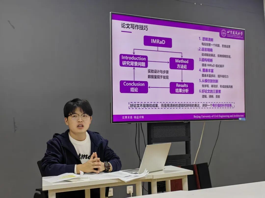 在提问环节,就同学们提出的科研论文研读方法问题,李昕鸣学长结合自身经验给出明确建议:从综述期刊入门搭建知识框架,再通过精读高级期刊深化理解,最终以发表最高层次论文为目标持续突破。