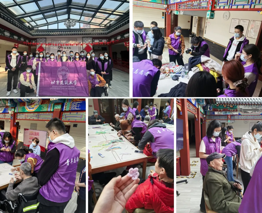 建筑菁英班学生代表姚兴博、金紫原与学校团学学生骨干共同前往颐寿轩养老照料中心开展志愿服务活动,与老同志们一起围坐交谈,共同学习制作手工花束,为老同志们送去温暖与关怀。