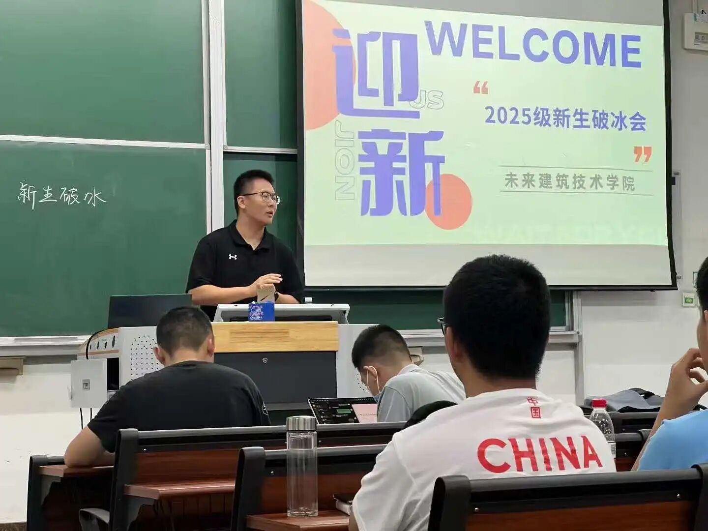 刚踏进教室的新生们还带着些许拘谨,朋辈辅导员和学长们便提议先来一场热身游戏。随着游戏进行,气氛也越来越热烈。在欢声笑语中,同学们完成了自我介绍,熟悉了彼此。